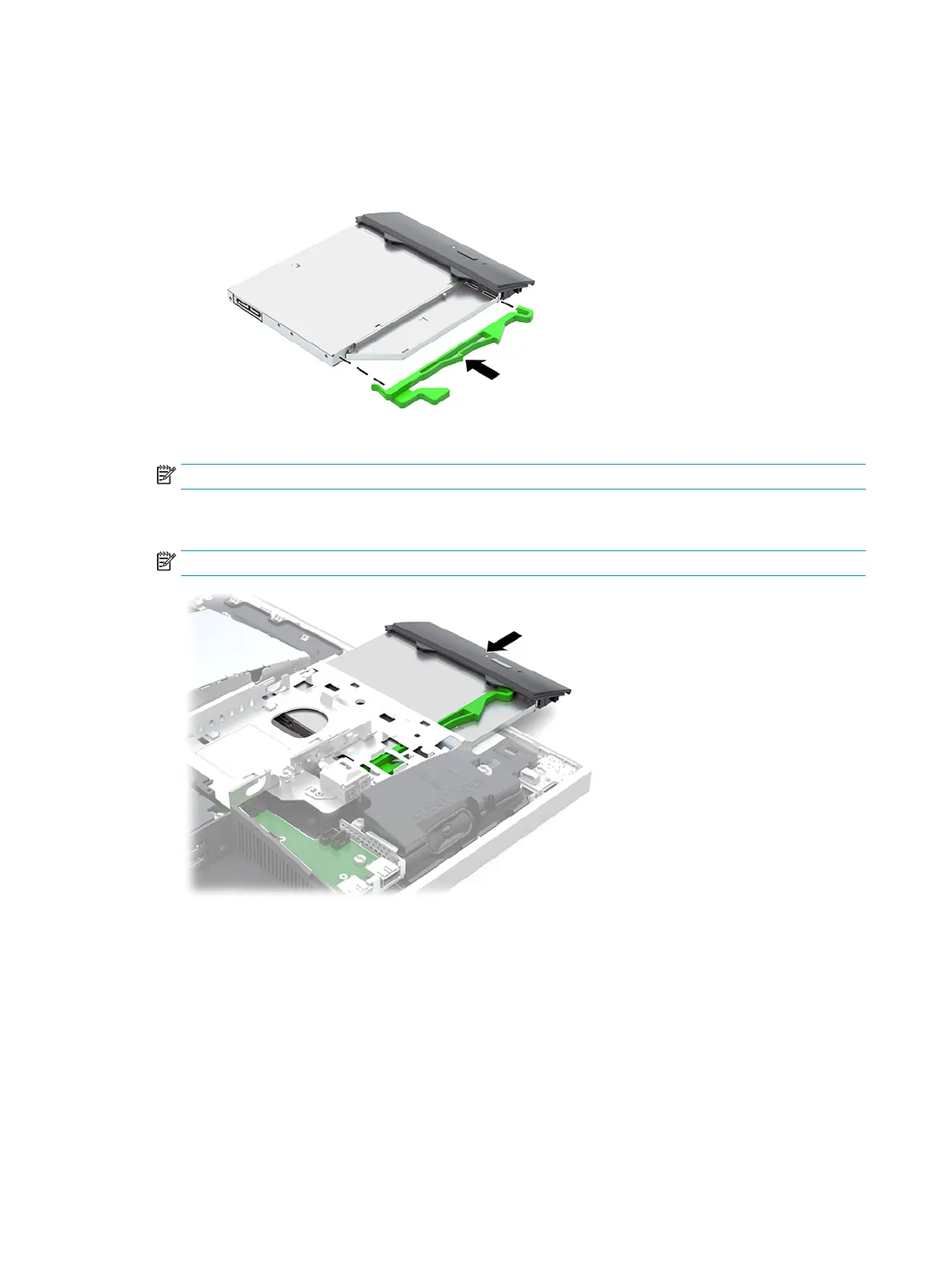 9. Align the new optical drive with the opening in the side of the computer. Push the drive in rmly until it