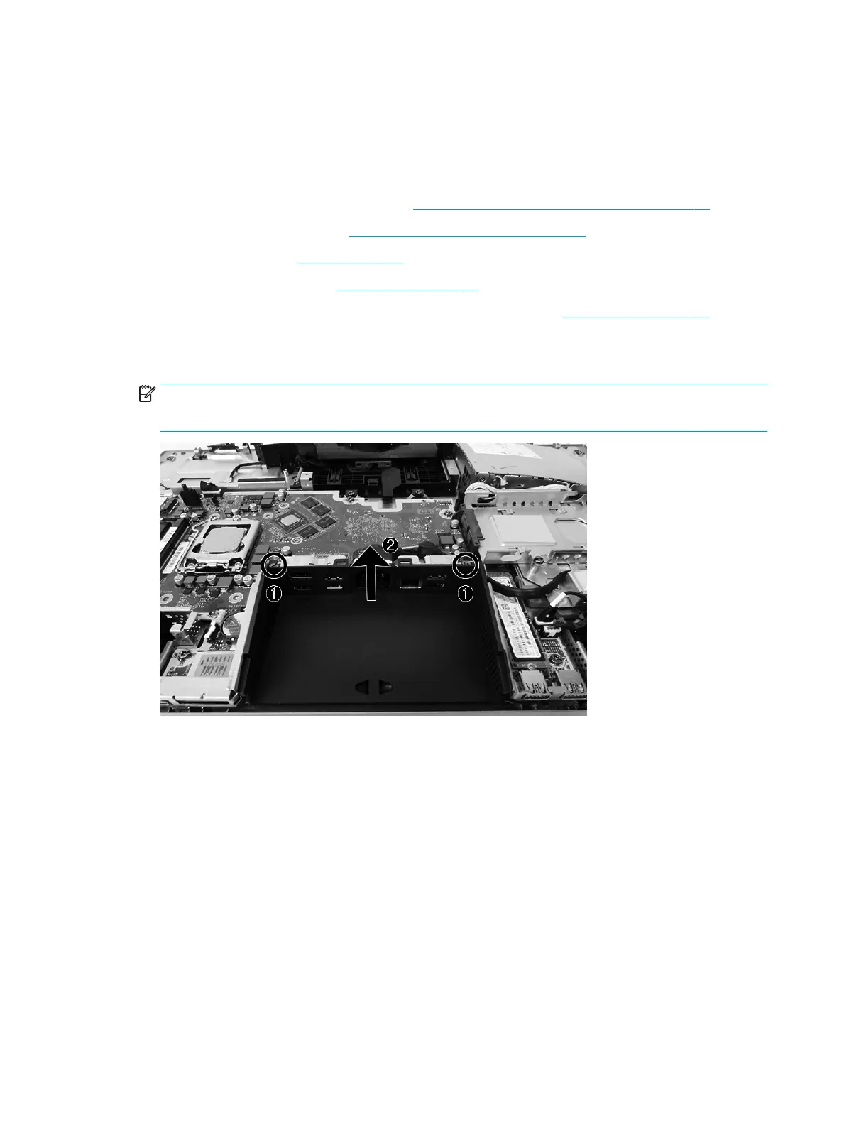5. Remove the I/O bracket secured to the system board (see callout 2 in System board on page 45).