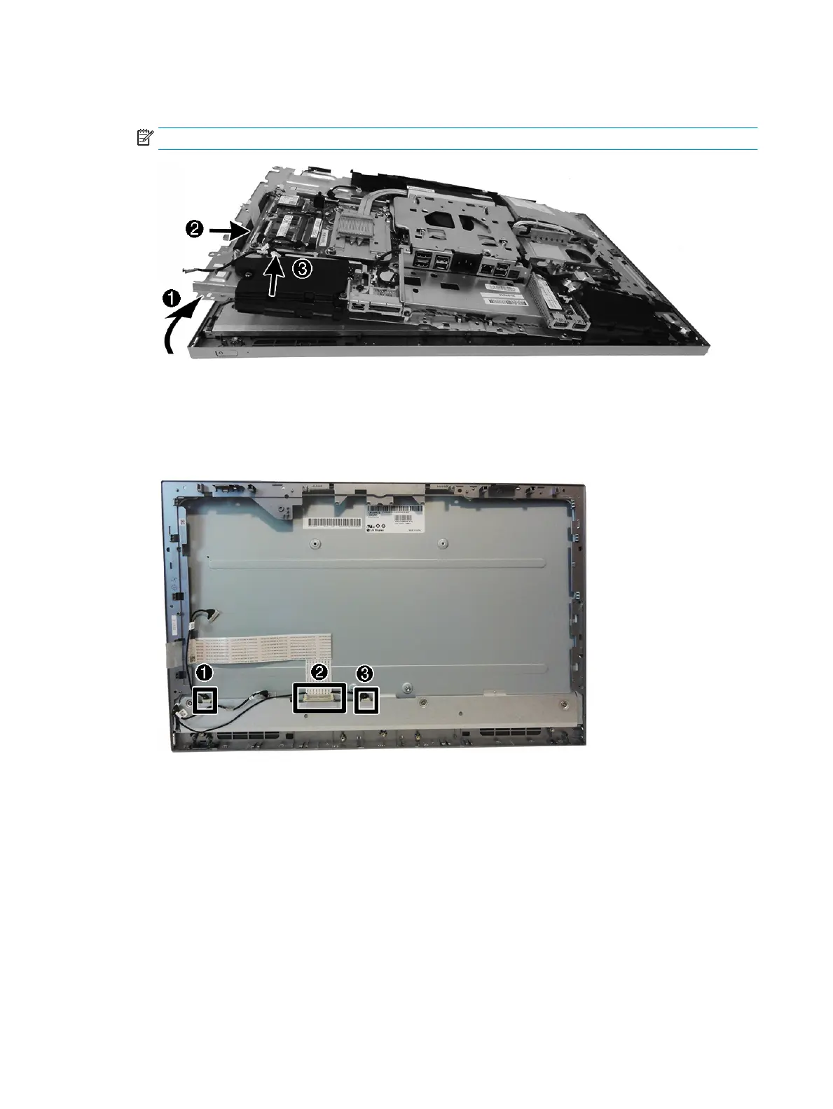 16. Disconnect the touch cable (3) from the rear of the display panel.