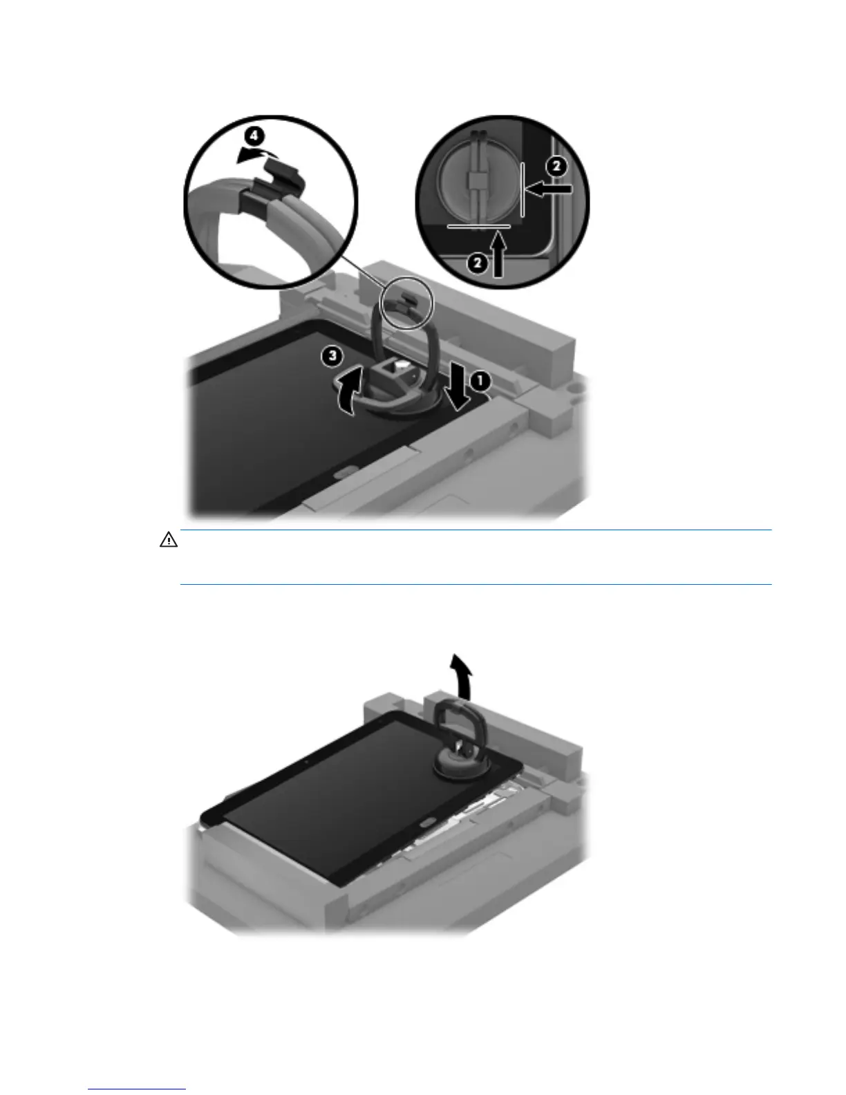 CAUTION: Do not lift the right edge of the display assembly more than ¼-inch from the tablet
