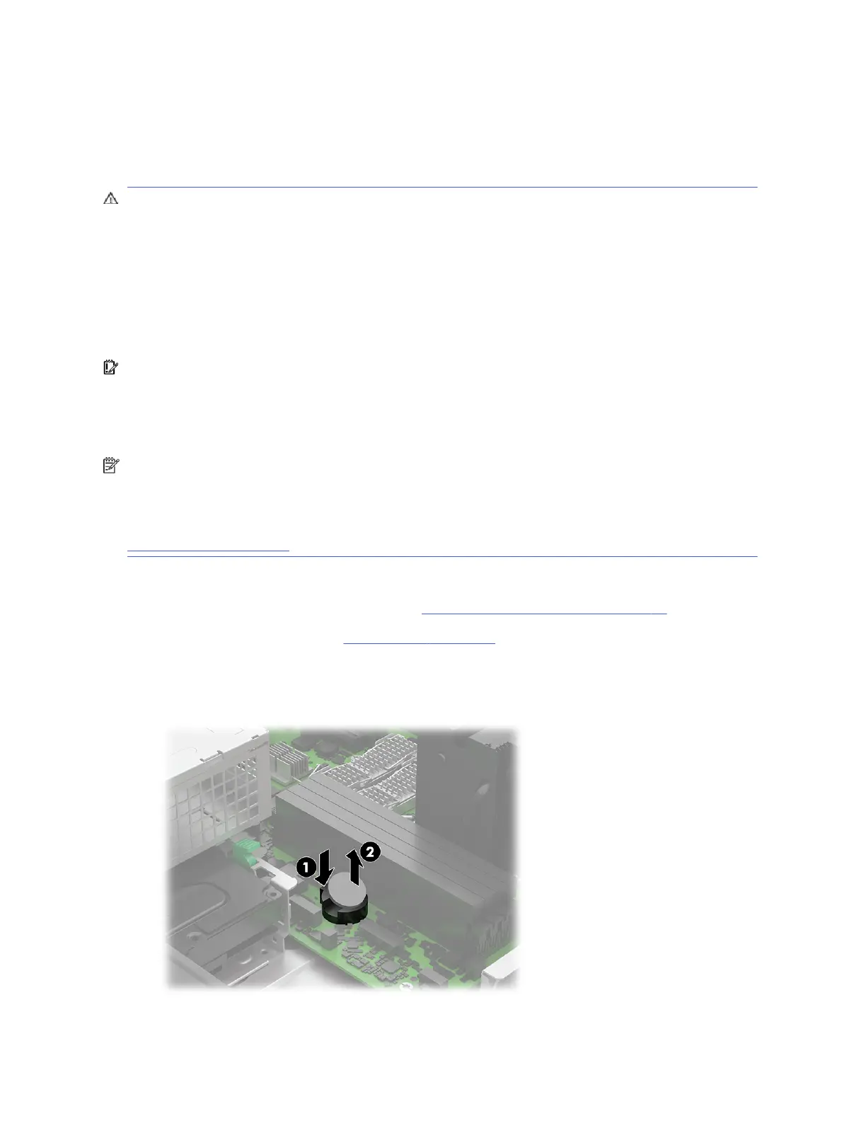 IMPORTANT: Before replacing the battery, back up the computer CMOS settings. When the battery is