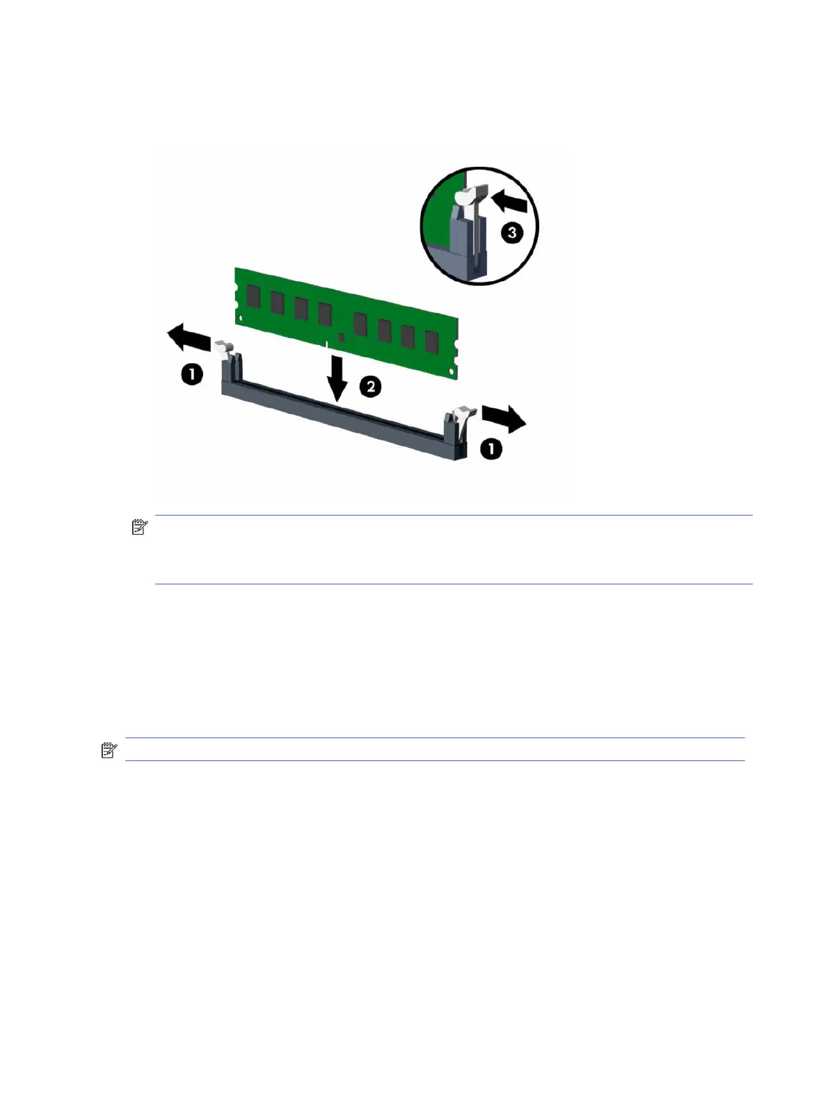 memory module into the socket (2). Press the module down into the socket so that the module is