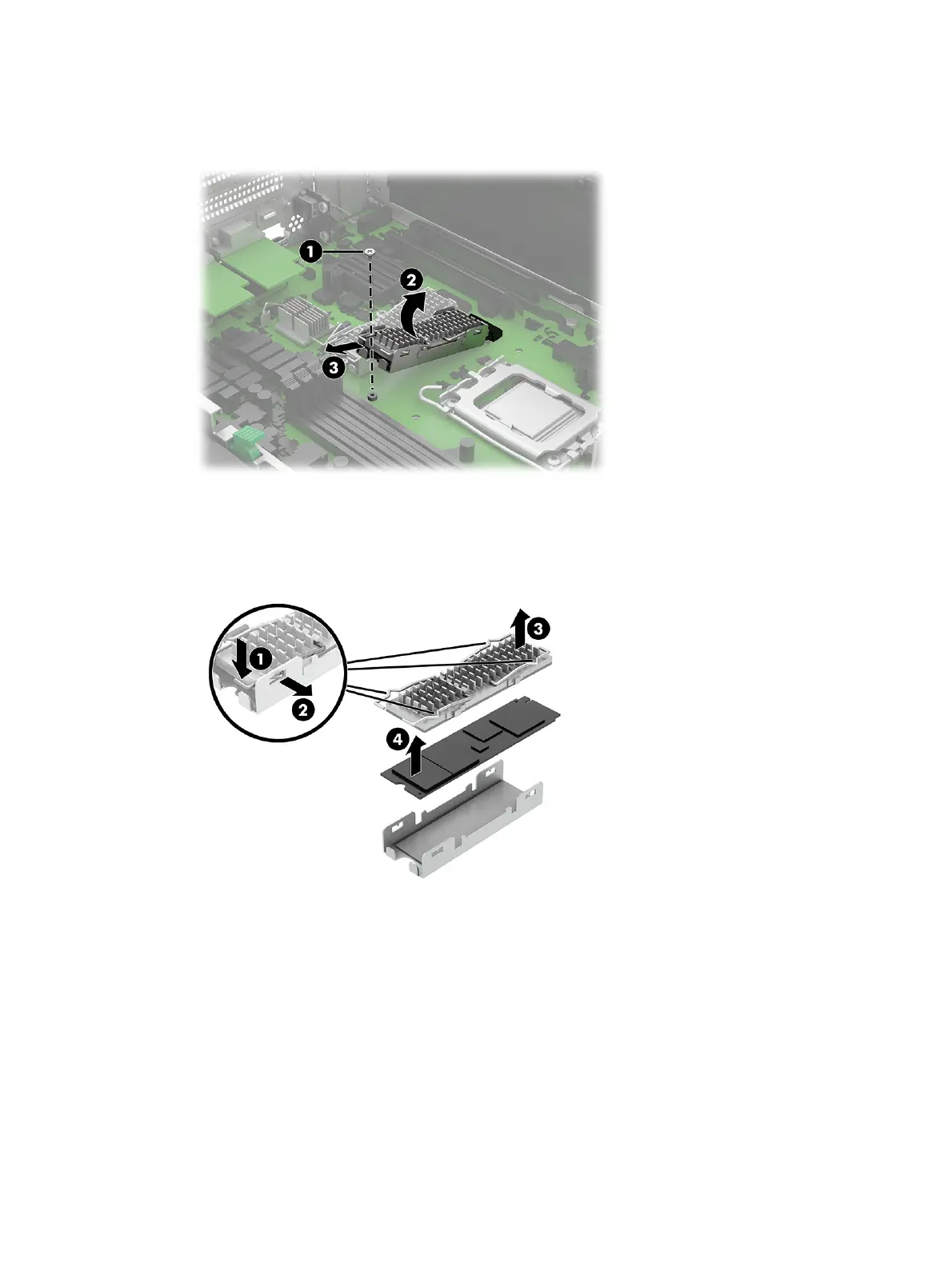 5. Lift the heat sink (3) off the top of the drive, and then remove the drive (4) from the bracket.