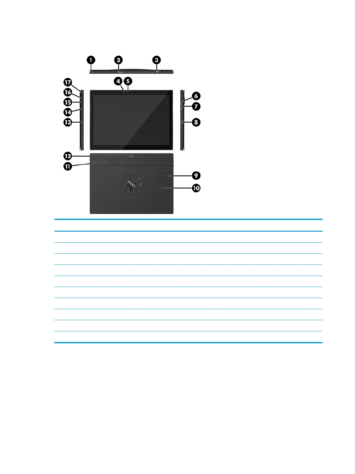 (3) Barcode scanner (optional) (12) Rear-facing webcam