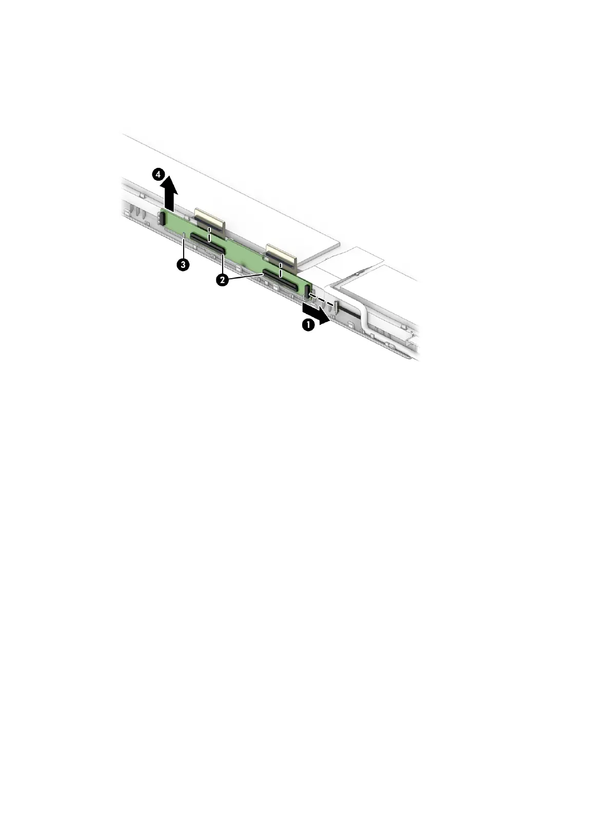 the touch screen board on the display assembly (1), and then remove both touch screen cables from the