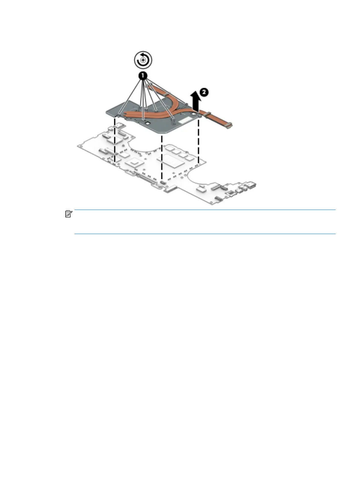 5. Loosen the three Phillips PM2.0×6.2 captive screws (3) that secure the heat sink to the system board.