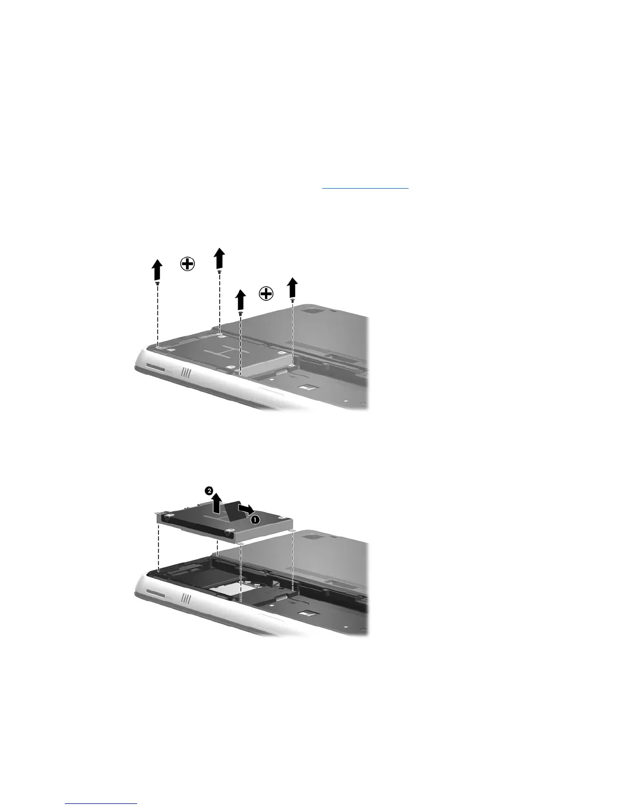1. Remove the four Phillips PM2.0×3.0 screws that secure the mass storage device to the computer.