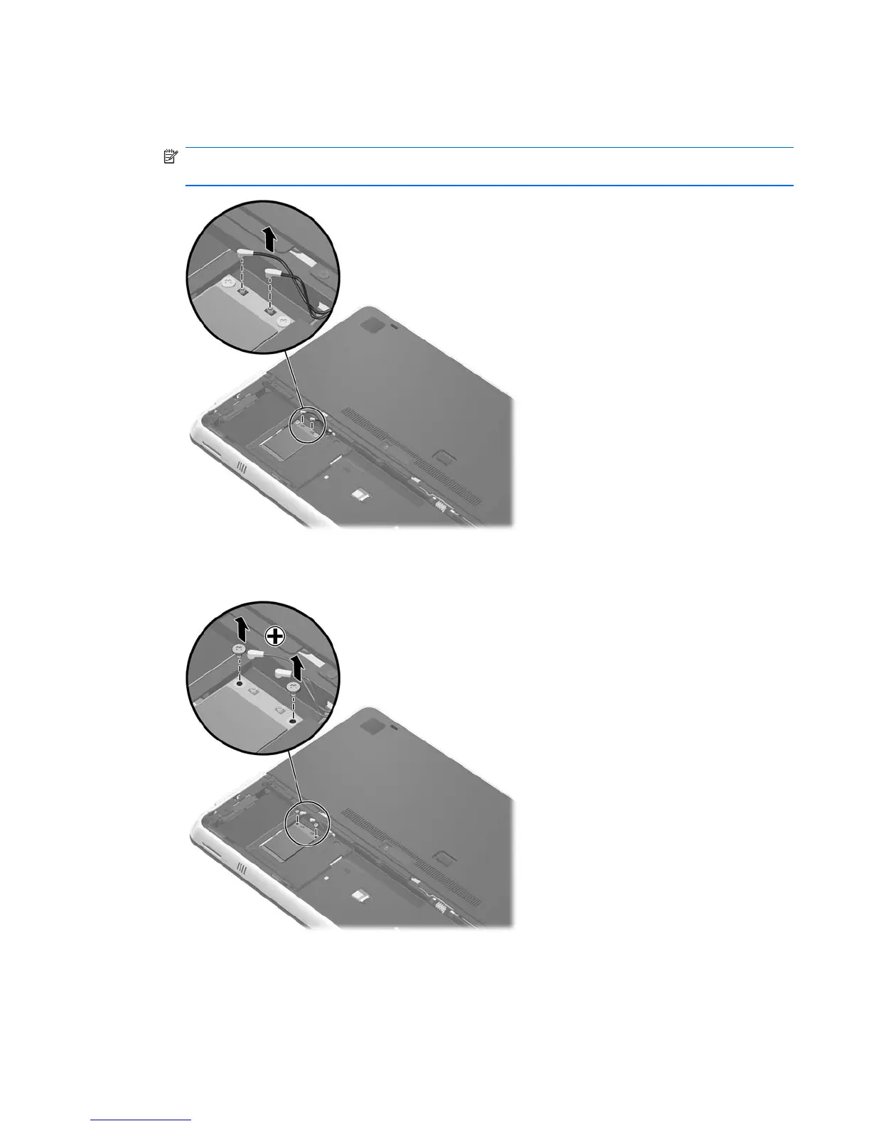 1. Disconnect the WWAN antenna cables from the terminals on the WWAN module.