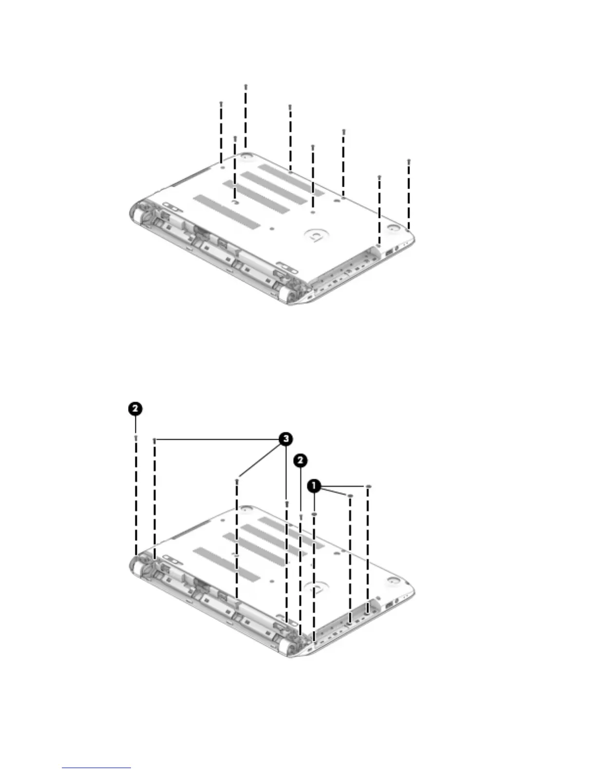7. Remove the three Phillips PM2.5×4.0 screws (3) in the battery bay that secure the top cover to the