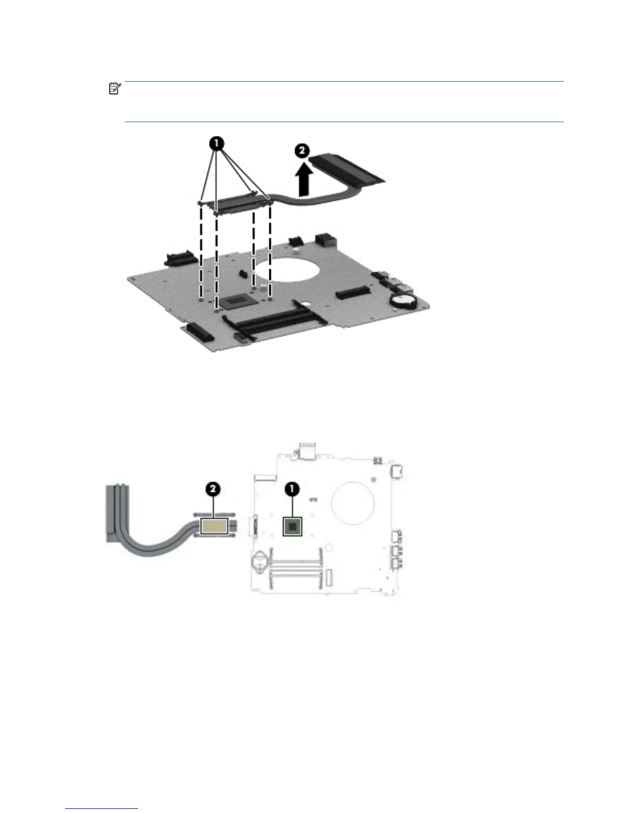 spare part kits. Thermal paste is used on the processor (1) and the heat sink assembly section (2) that