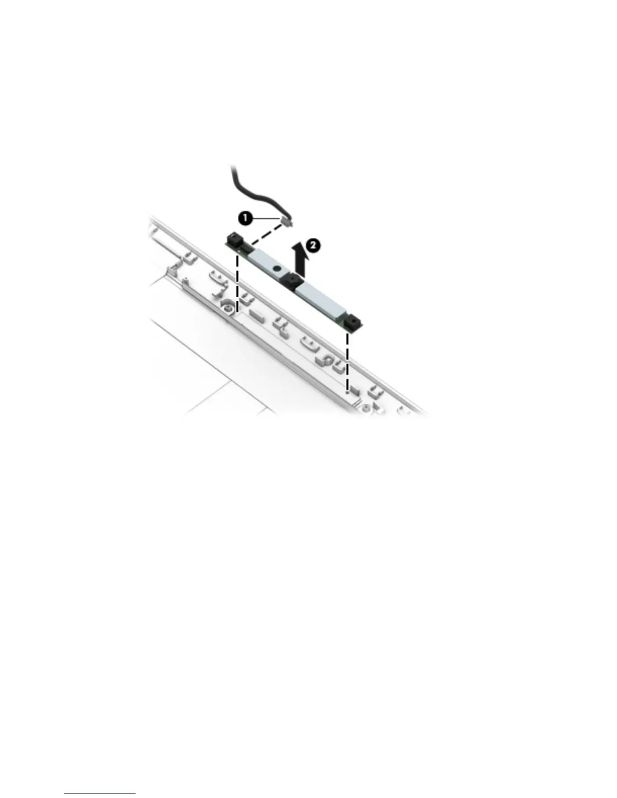 a. Disconnect the webcamera/microphone module cable (1) from the webcamera/microphone