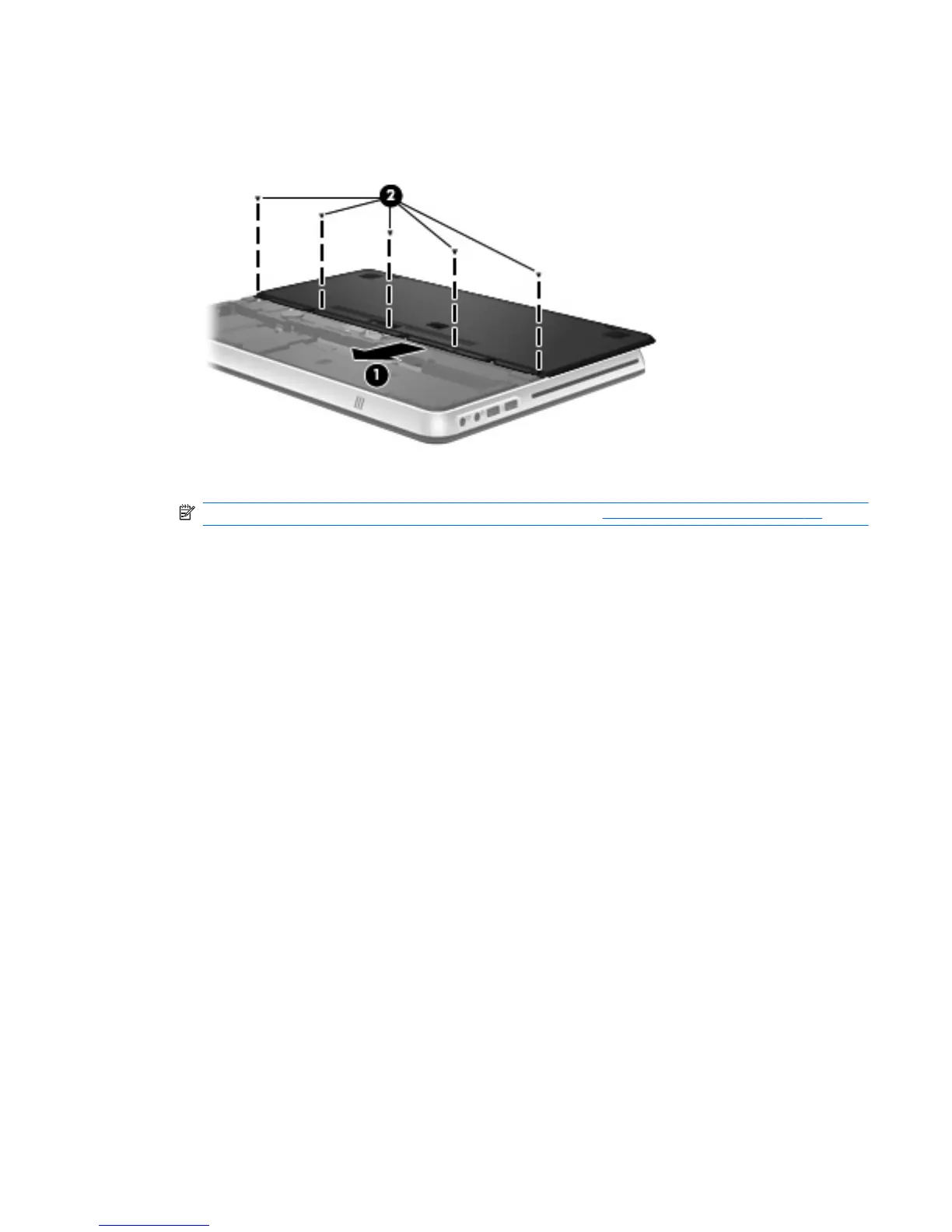 9. Replace the memory module compartment cover (1) and then slide the cover to the front until it