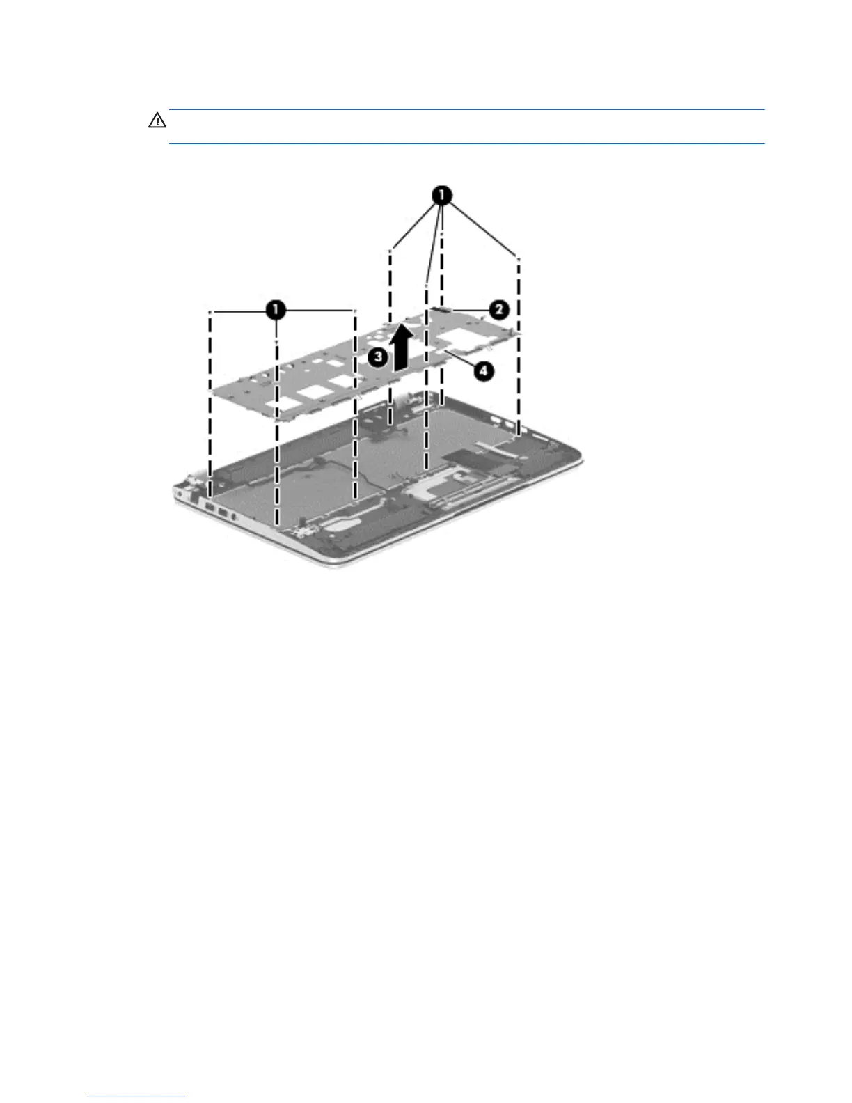 CAUTION: When removing the keyboard shield, make sure the keyboard cable and backlight