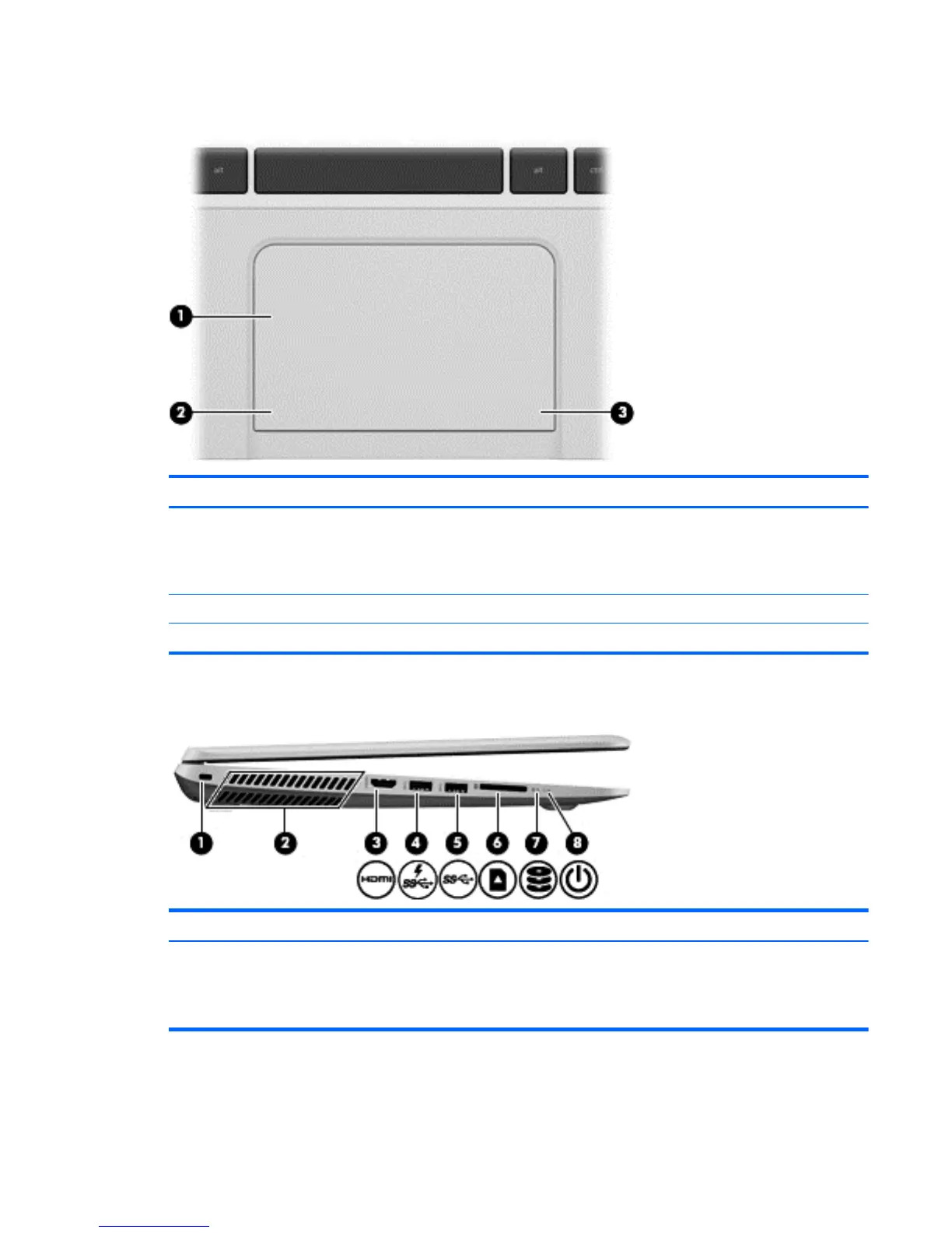 (1) TouchPad zone Moves the on-screen pointer and selects or activates