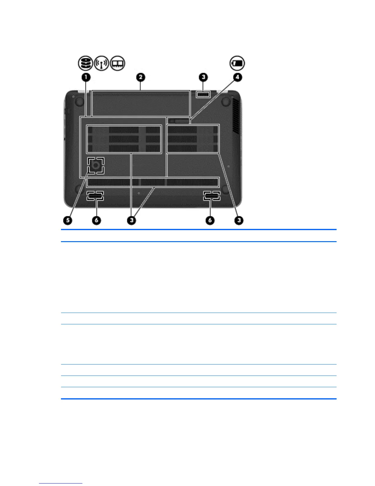(1) Service door Provides access to the hard drive bay, the WLAN