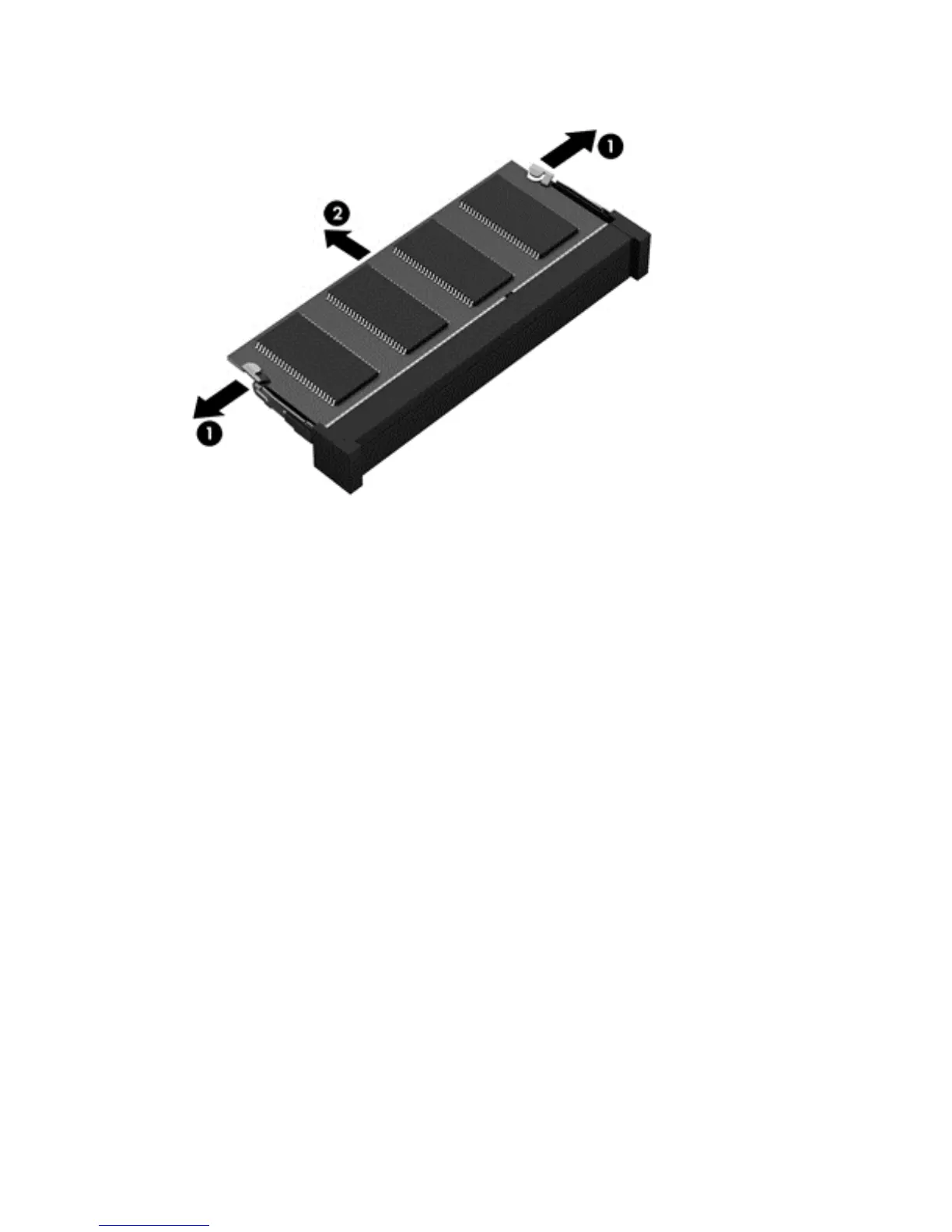 3. Remove the memory module (2) by pulling the module away from the slot at an angle.