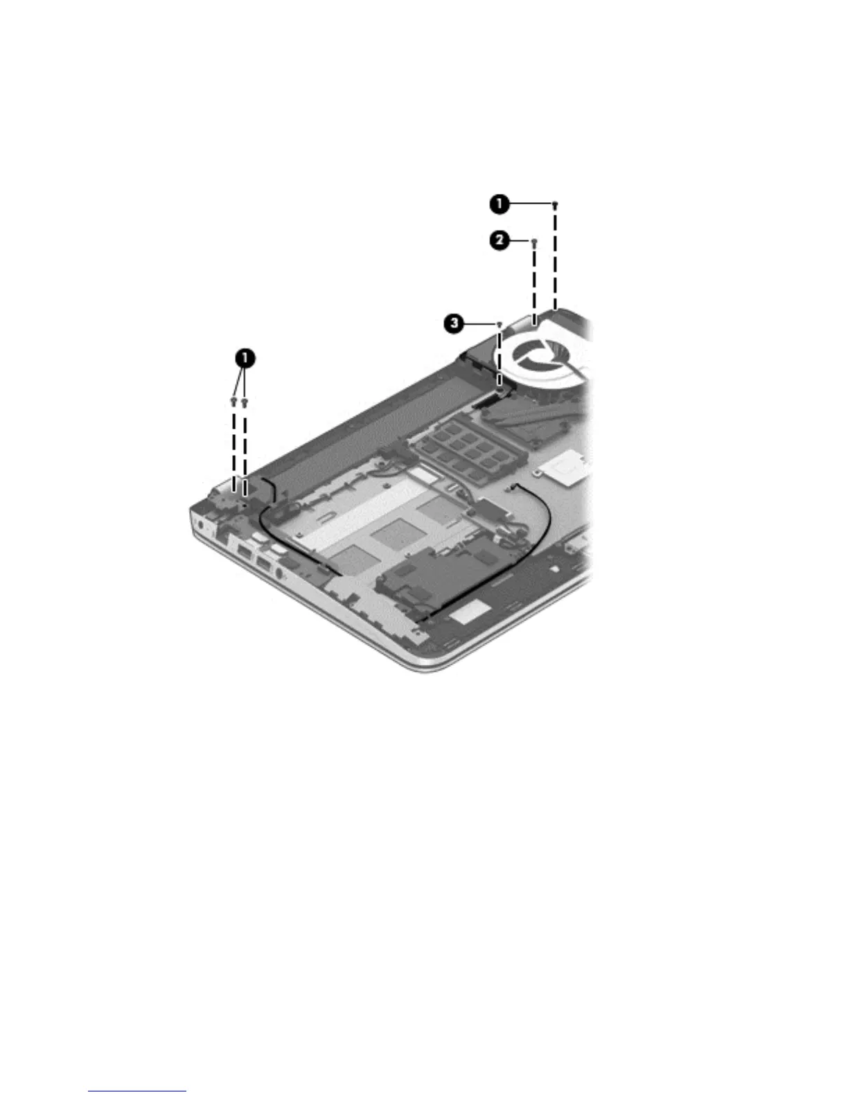 (1) Three Phillips PM2.5×4.5 screws (two on the left hinge, one on the right hinge)