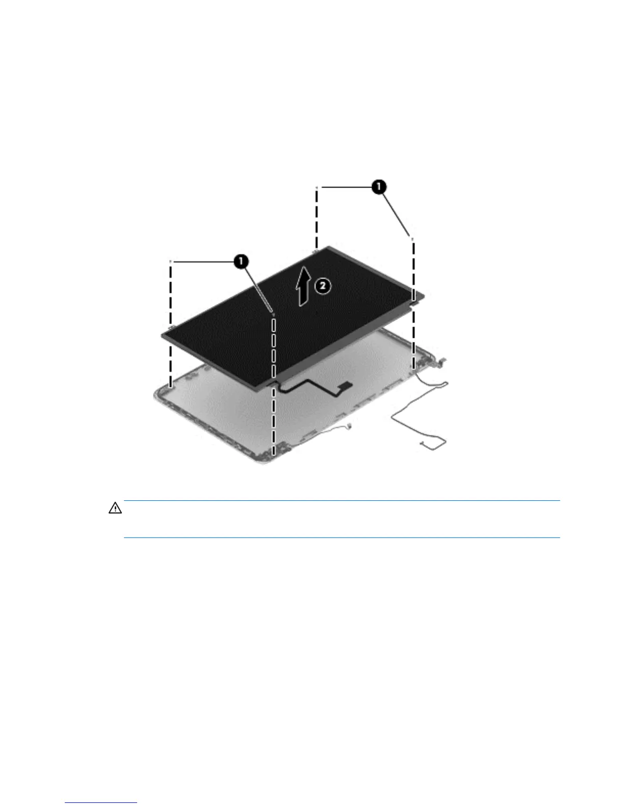 b. Lift the display panel (2) straight up and remove it from the display enclosure.