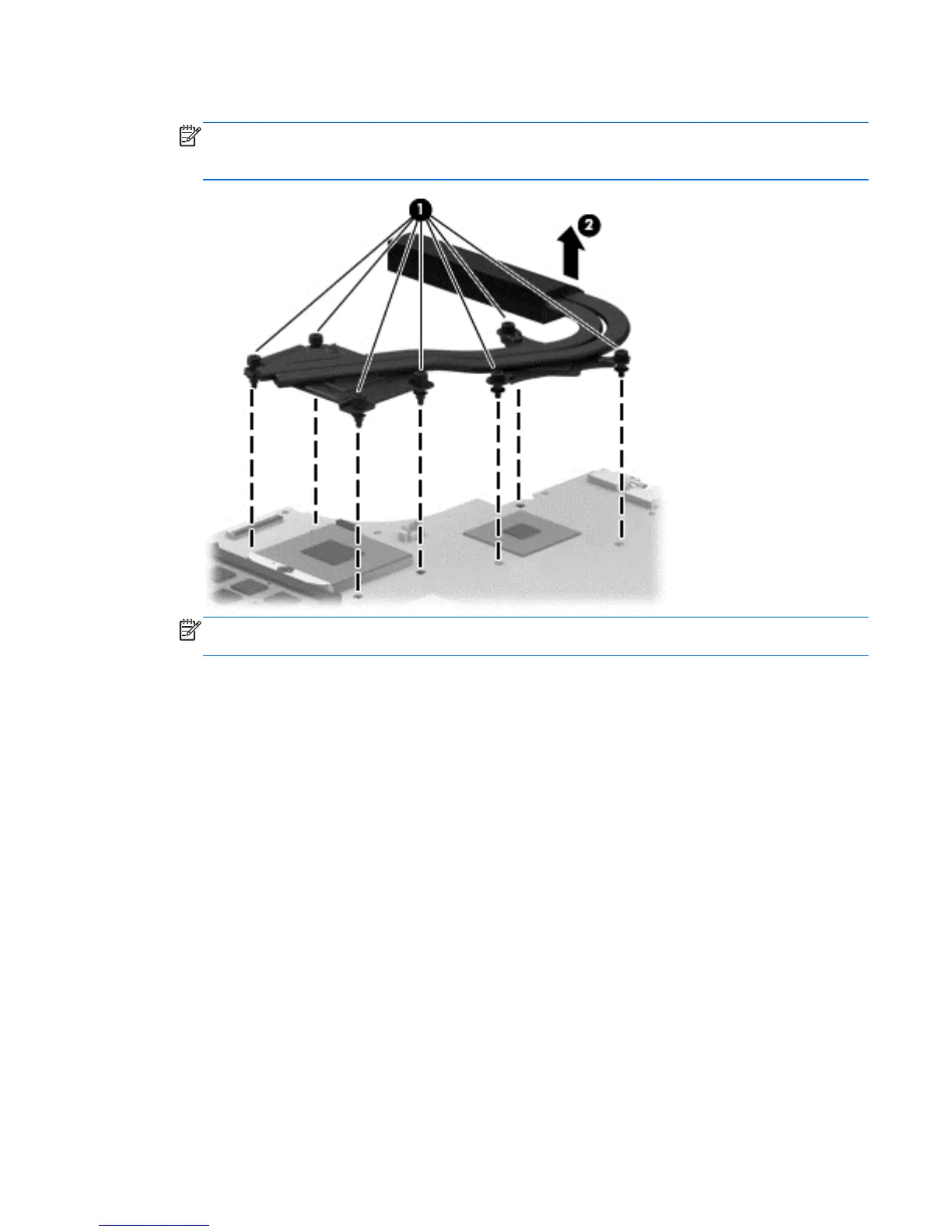 PM2.0×11.0 captive screws (1) that secure the heat sink to the system board.