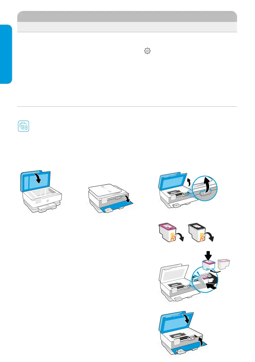 vērsts pret printeri. Ievietojiet kasetnes un tās