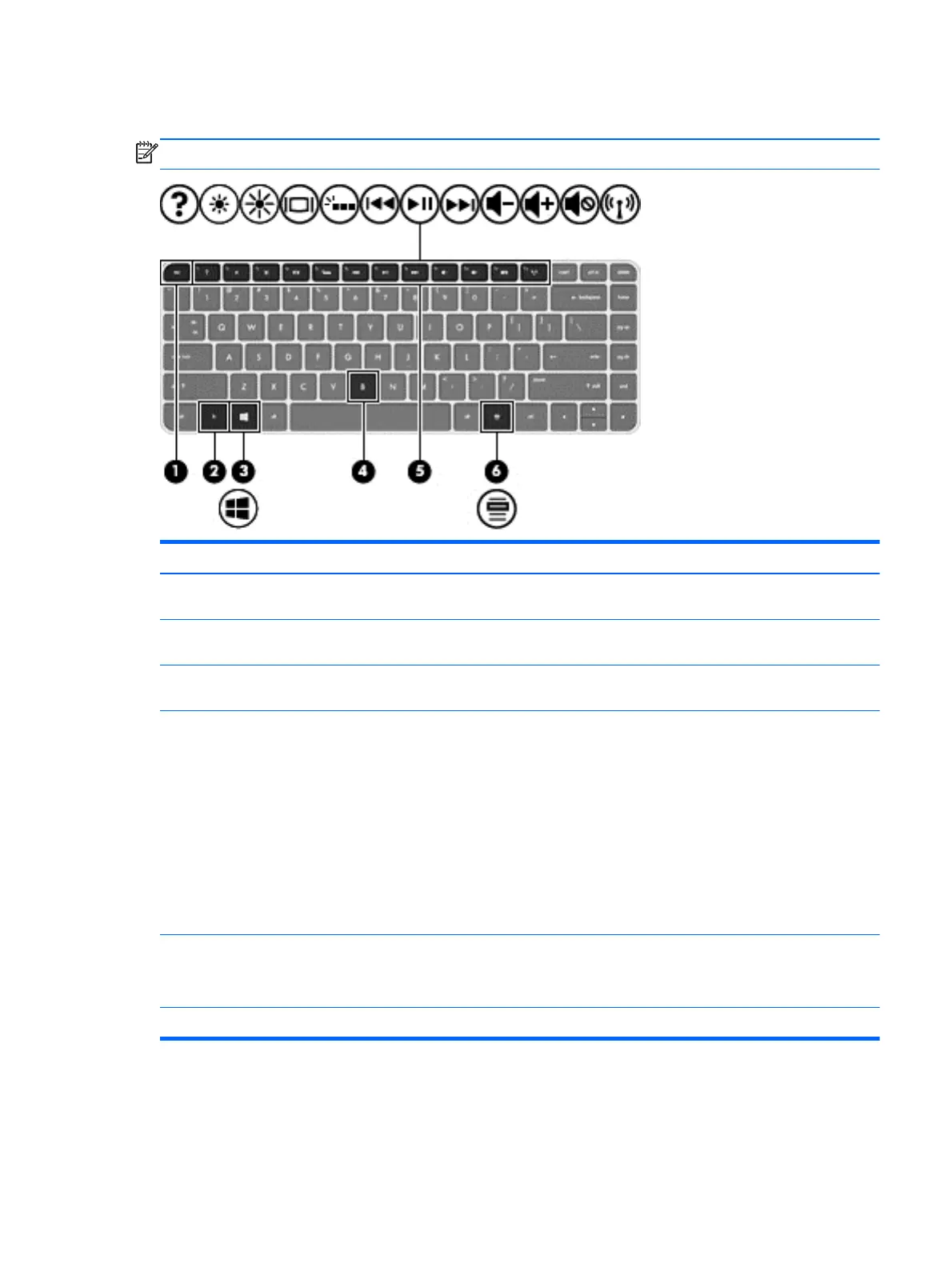 (6) Windows apps key Displays options for a selected object.