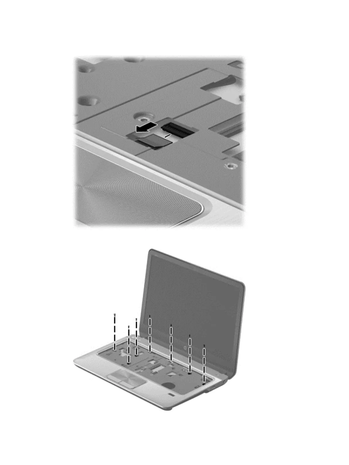 6. Release the ZIF connector to which the TouchPad button board cable is attached, and then