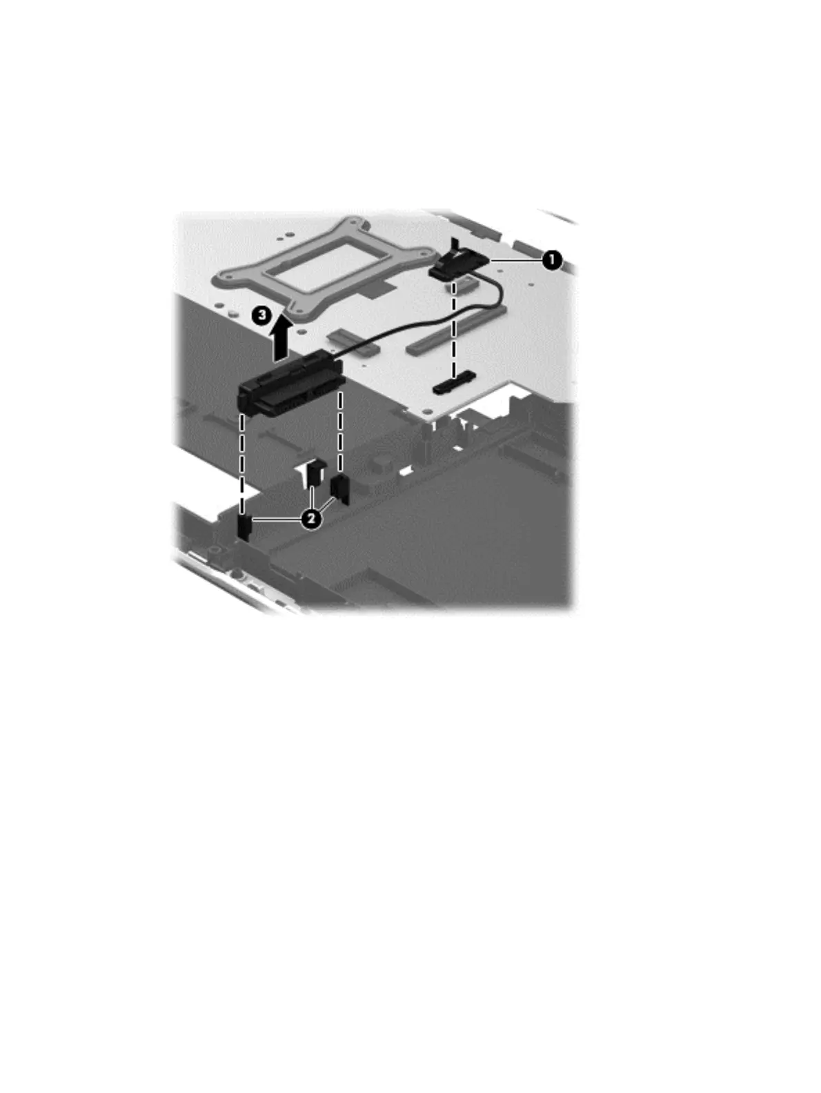 2. Release the three clips (2) built into the base enclosure that secure the optical drive connector to