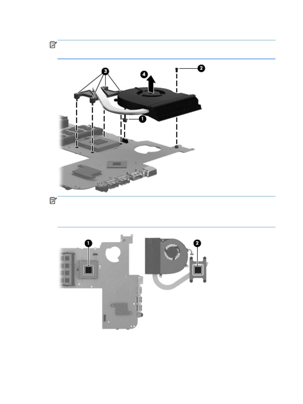 NOTE: The thermal material must be thoroughly cleaned from the surfaces of the fan/heat sink