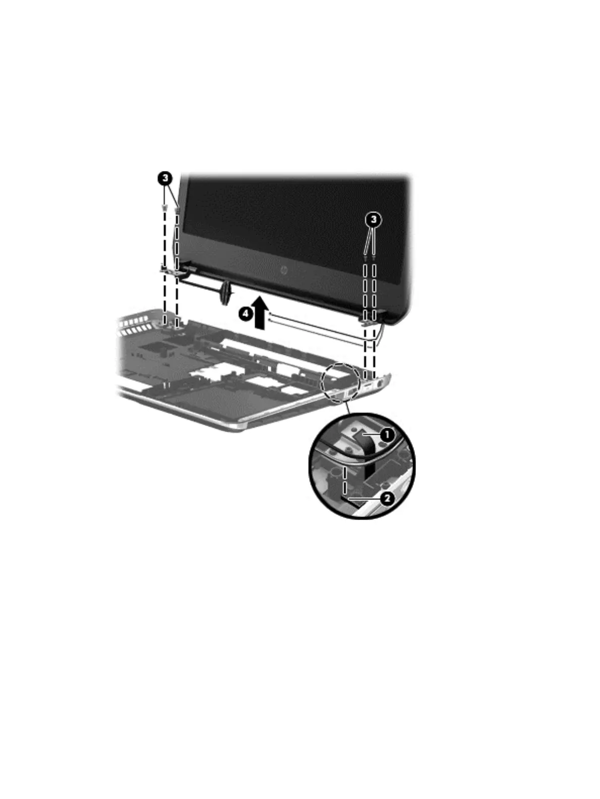 3. Remove the four Phillips PM2.5×6.5 screws (3) that secure the display assembly to the