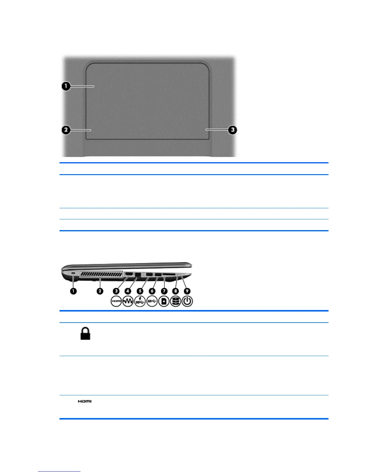 (1) TouchPad zone Moves the on-screen pointer and selects or activates items