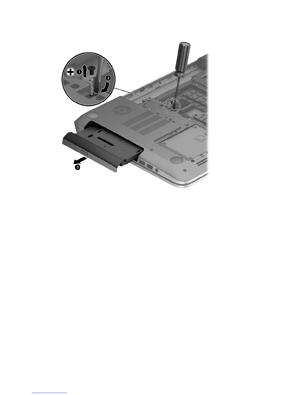 3. Remove the optical drive (3) from the computer.