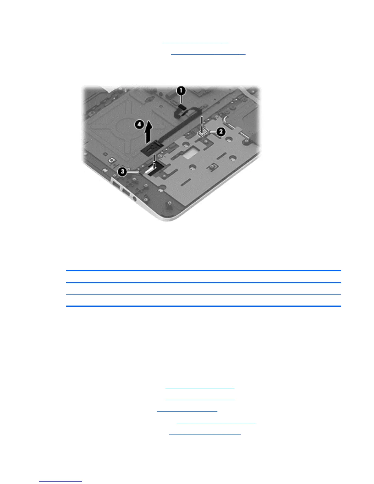 1. Disconnect the cable (1) that secures the fingerprint reader to the top cover.