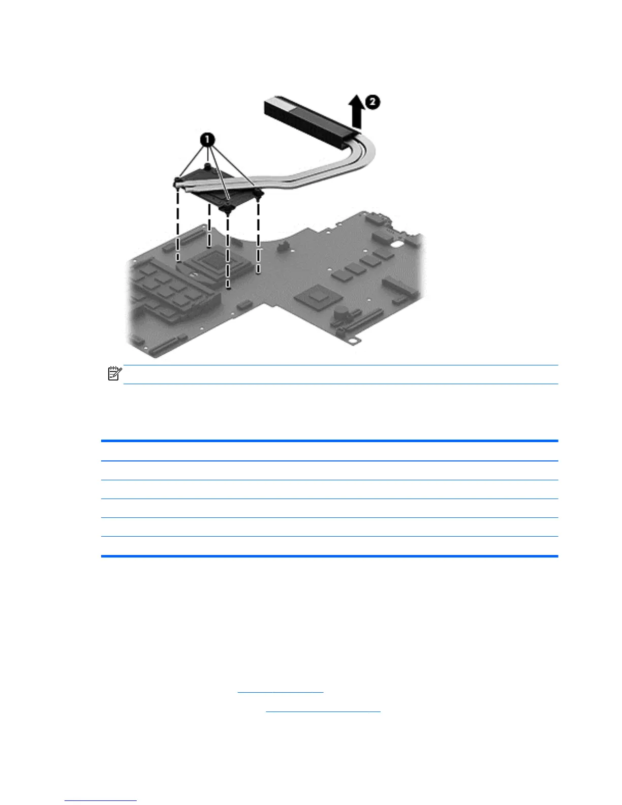 Loosen the 4 captive screws in the order listed on the heat sink (1), and then remove the heat