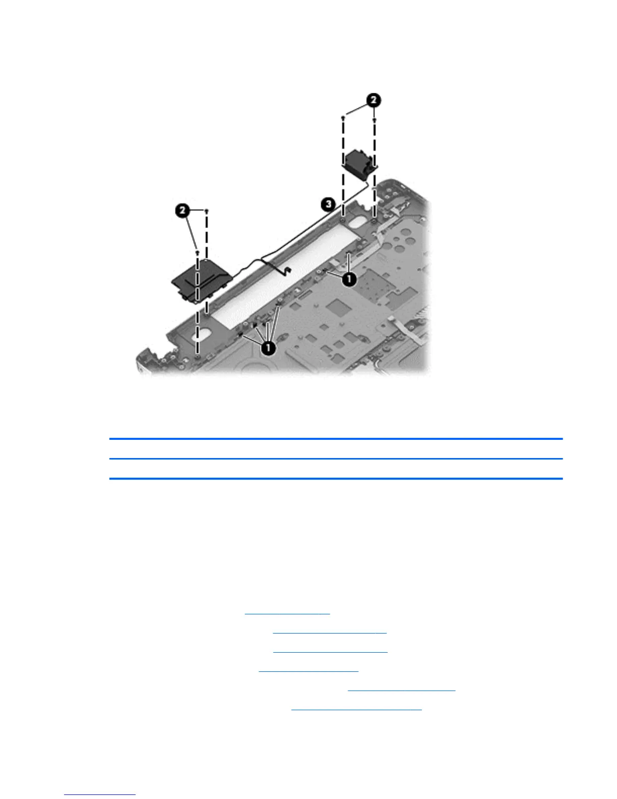 Disengage the power connector cable (1) from the tabs, remove the 4 screws (2), and then