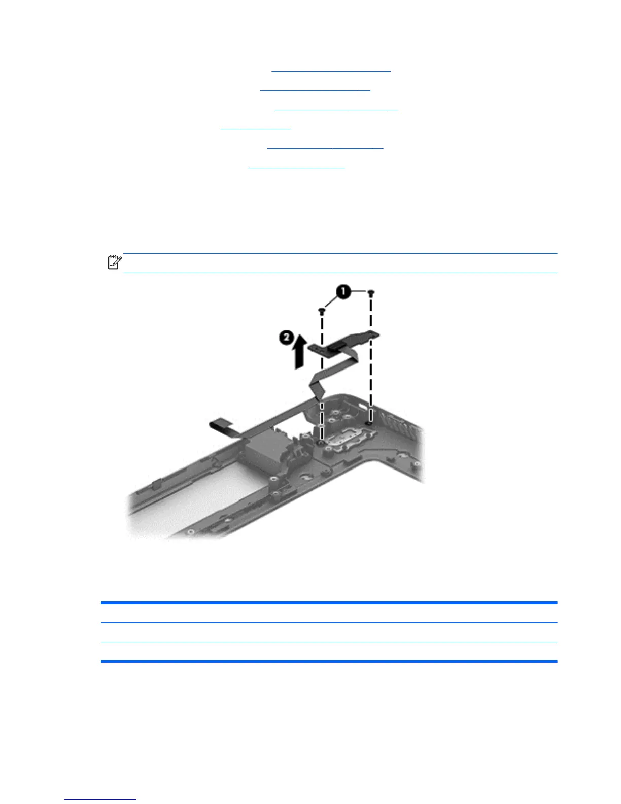 2. Remove the 2 Phillips PM 2.0x3x0 screws securing the Power button board to the top cover (1).
