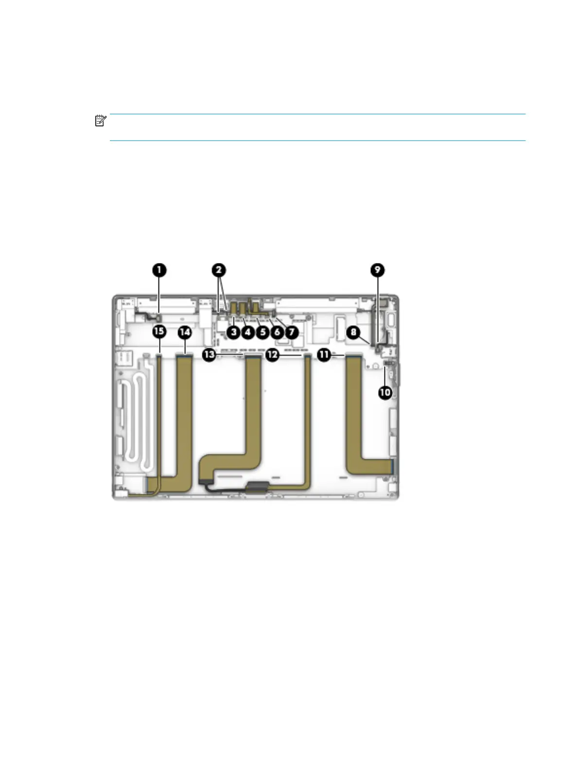 NOTE: The #1/white WLAN antenna cable connects to the WLAN module "#1/Main" terminal. The #2/