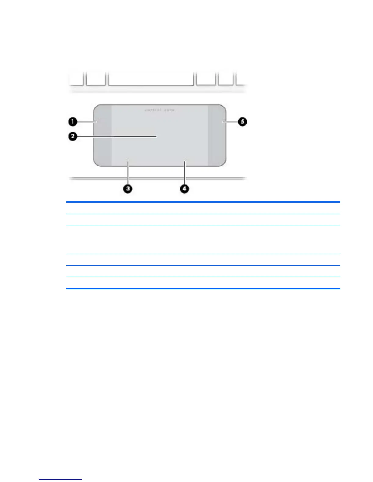 (2) TouchPad zone Reads your finger gestures to move the pointer or activate