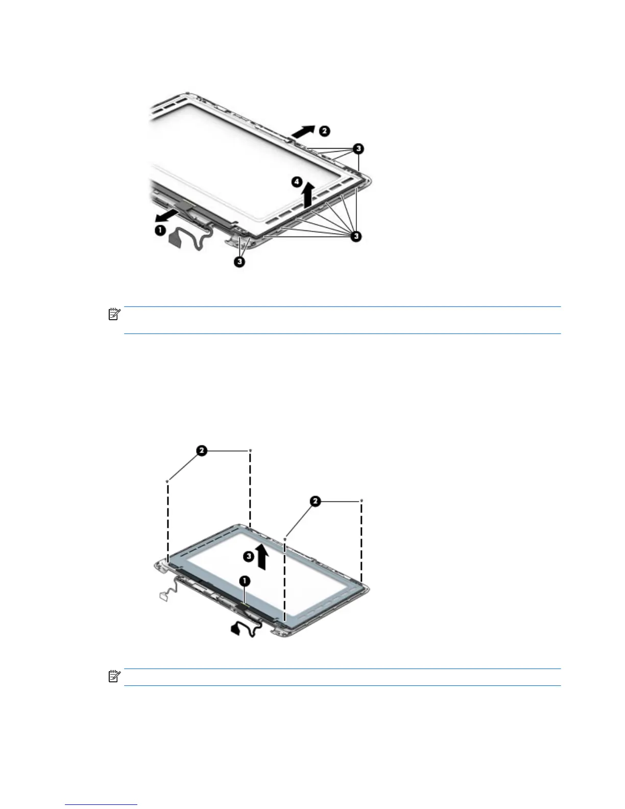 NOTE: The display panel and bezel are available using spare part number 774602-001 for HD panels