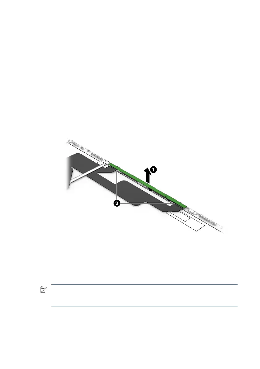 a. Carefully lift the module to release it from the display back cover (1). (The