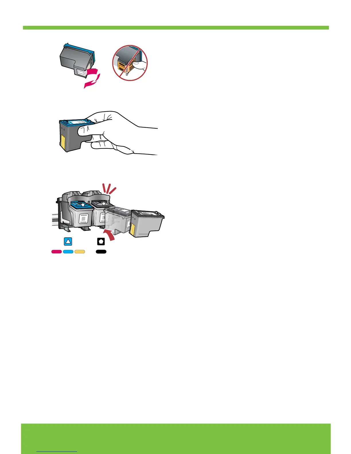 Kartrid tiga warna masuk ke slot kartrid kiri dan