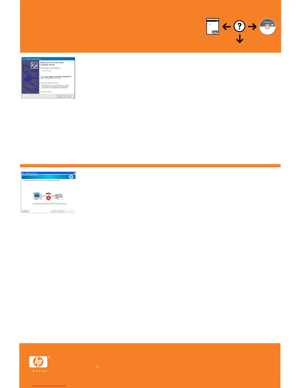 Action: Cancel all screens. Unplug the USB cable, and then insert the software CD.