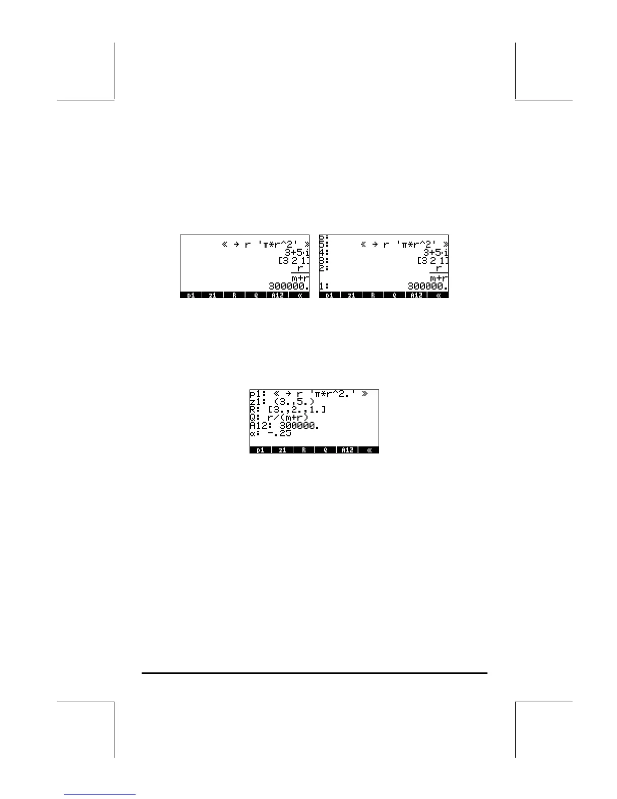 This produces the following screen (Algebraic mode in the left, RPN in the