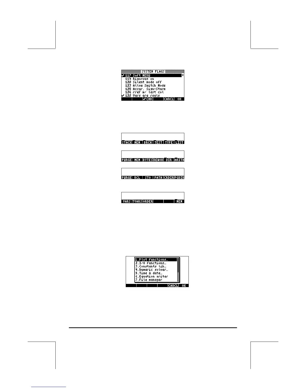 options for menus in the calculator (CHOOSE boxes and soft MENUs).
