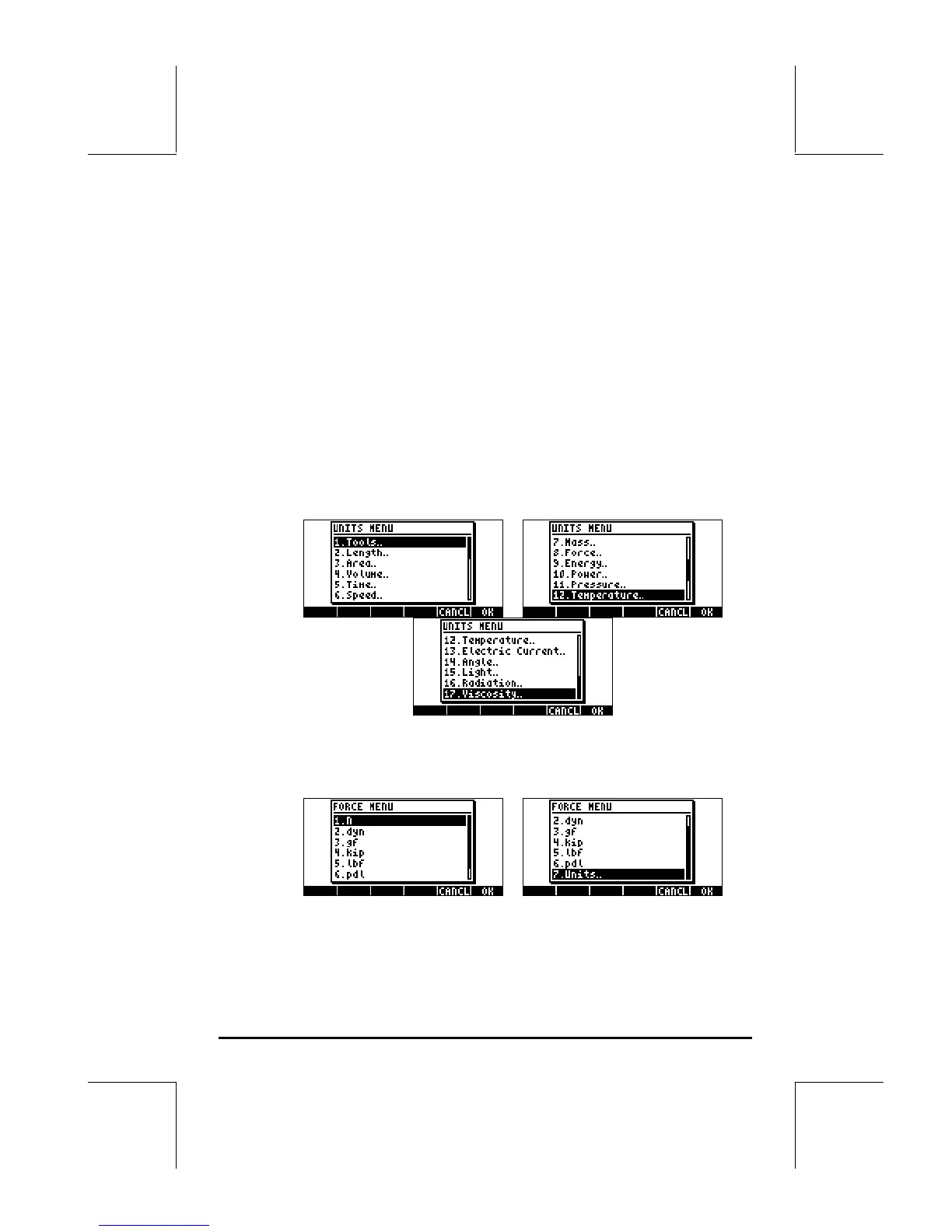 Force.. shows the following units menu: