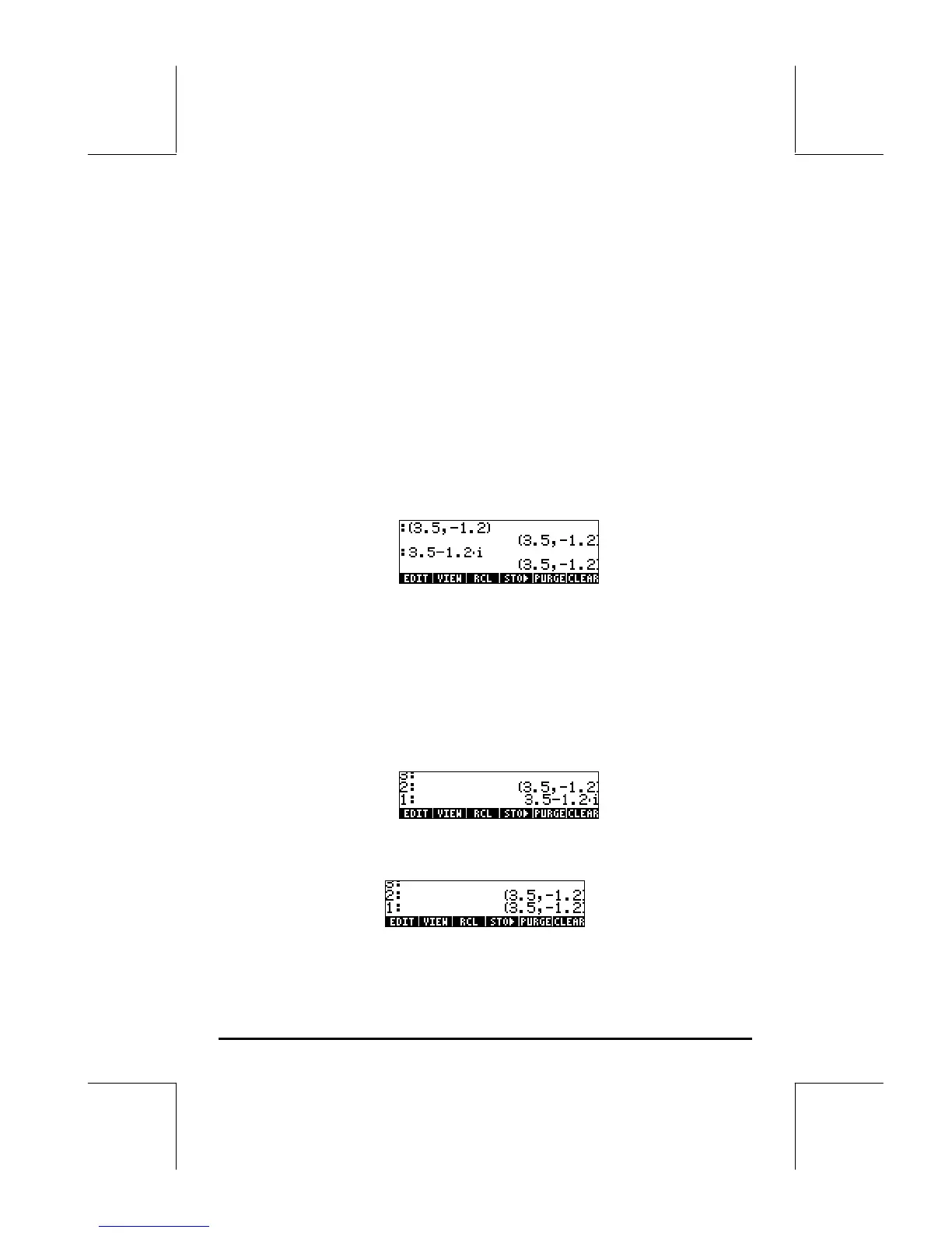 calculator in ALG mode, the complex number (3.5,-1.2), is entered as: