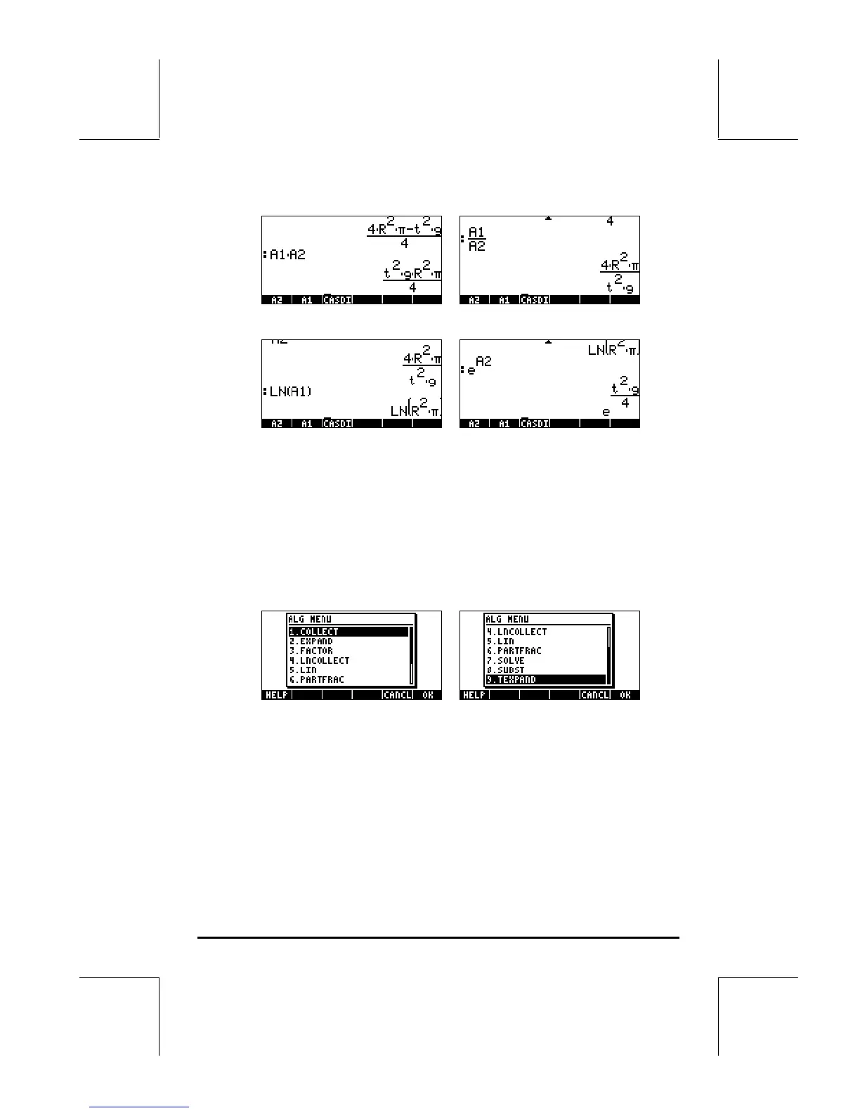 The ALG (Algebraic) menu is available by using the keystroke sequence