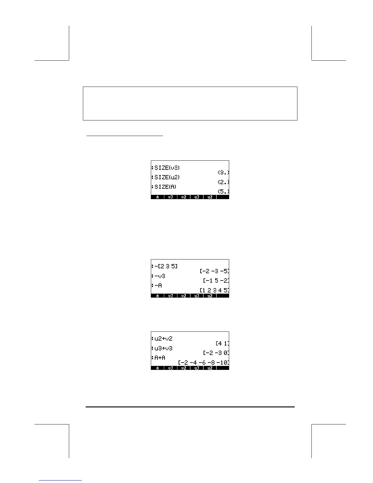 To illustrate operations with vectors we will use the vectors A, u2, u3, v2, and