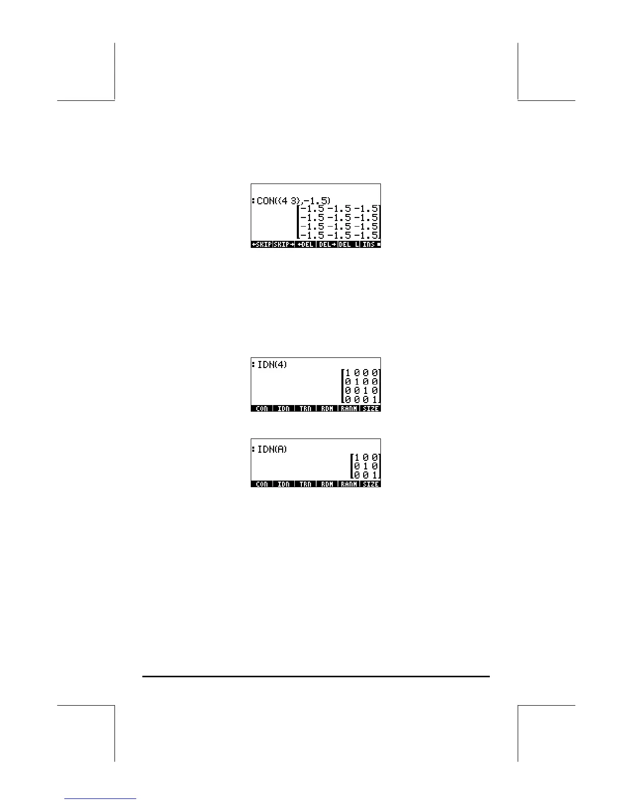 value. Function CON generates a matrix with constant elements. For