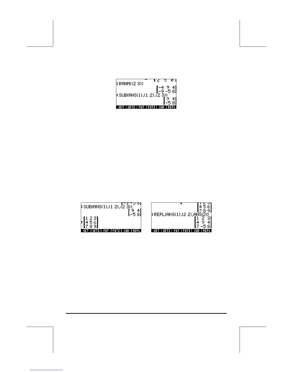 shot to the right shows the application of function RPL to replace the matrix in