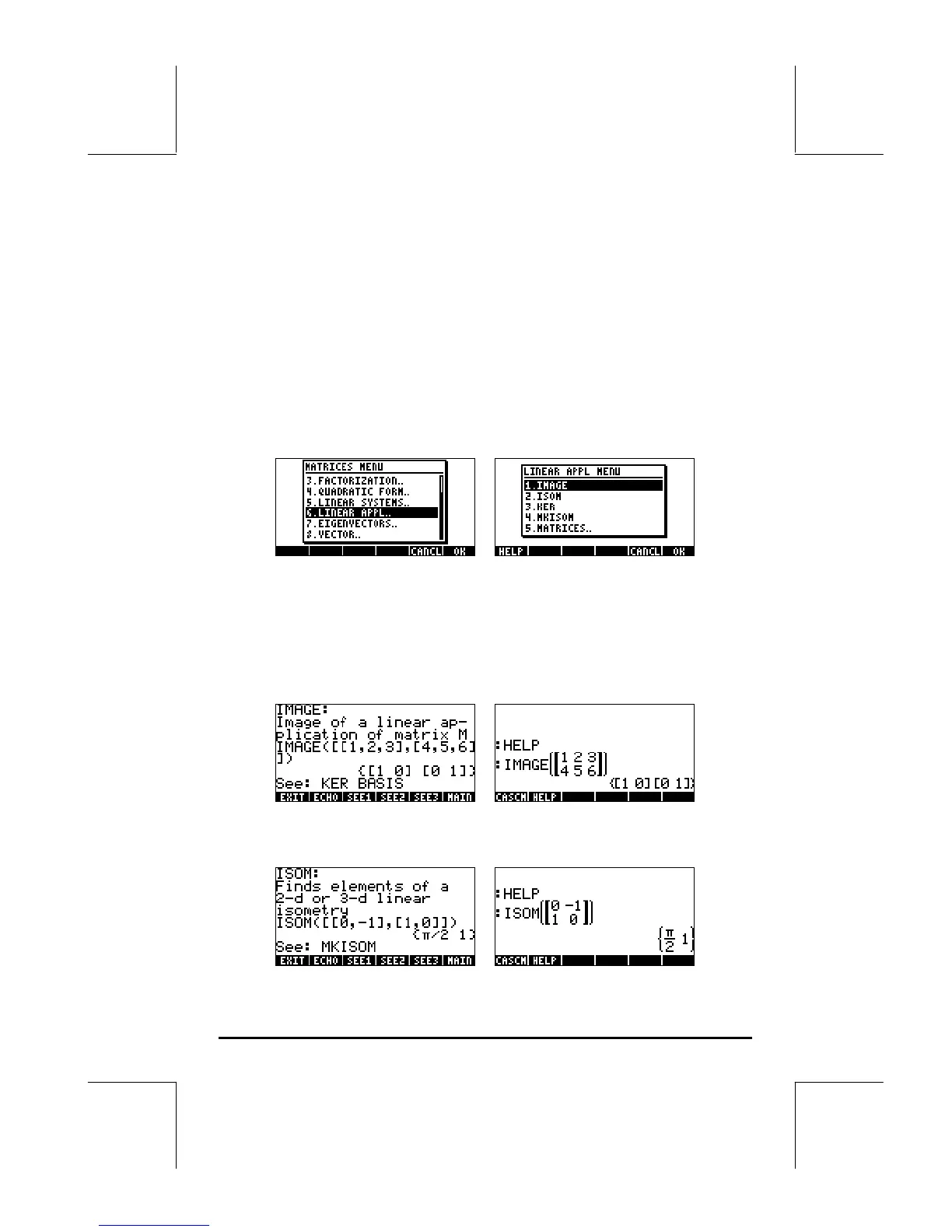The LINEAR APPLICATIONS menu is available through the „Ø.